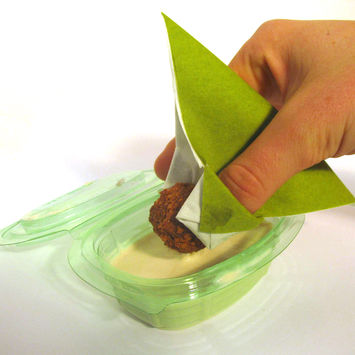 A napkin created by one mechanic action. user experience with finger food and dips.